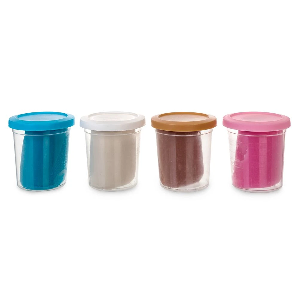 Four cans of toy ”dough” (pink, blue, white and brown)*